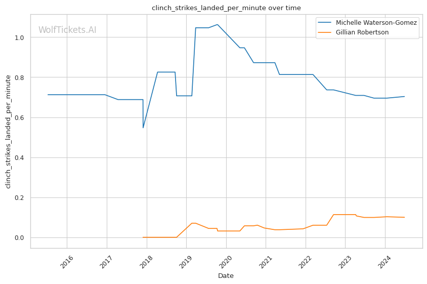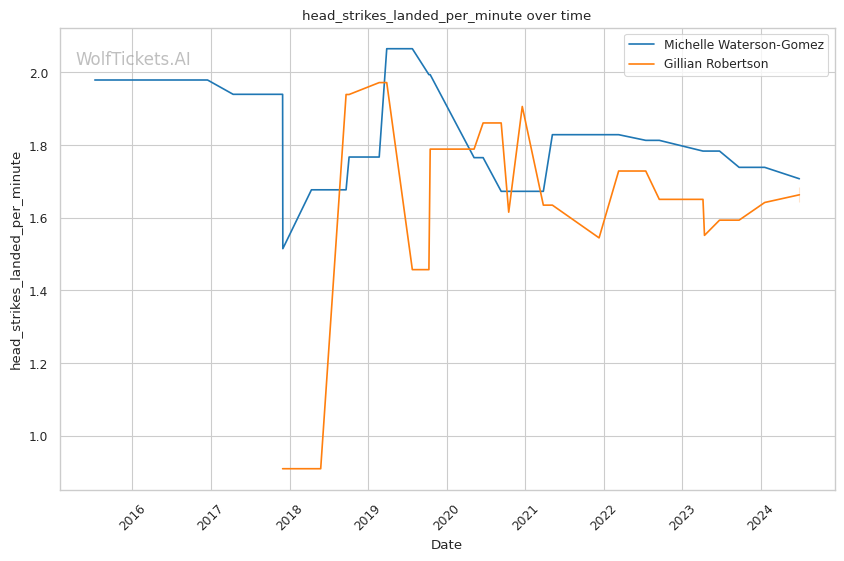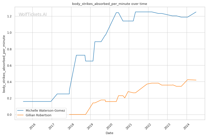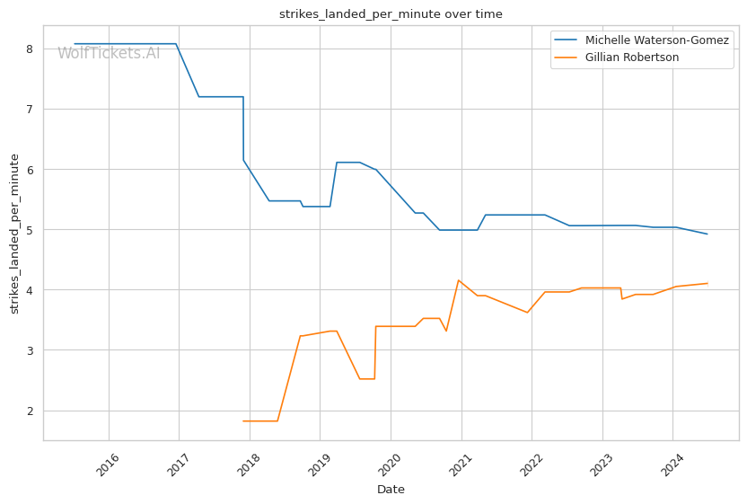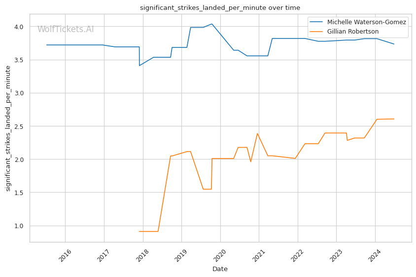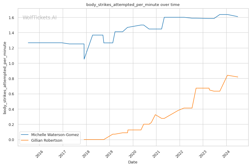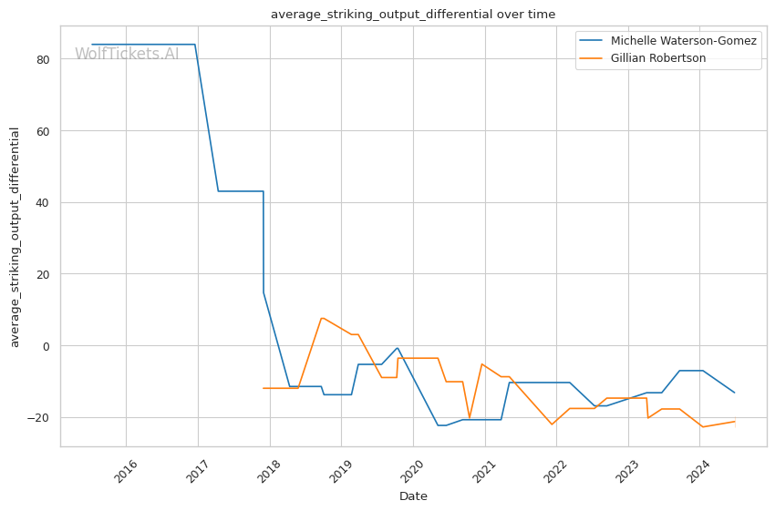 | Stat | Michelle Waterson-Gomez | Gillian Robertson | Weight Class Average | |