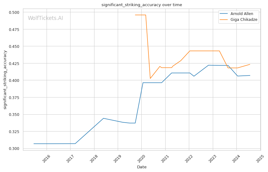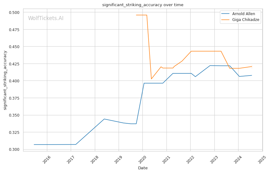 | Significant Striking Accuracy | 40.77% | 42.32% | 43.47% | |