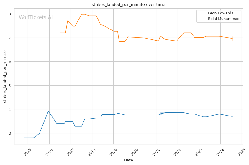 | Stat | Leon Edwards | Belal Muhammad | Weight Class Average | |