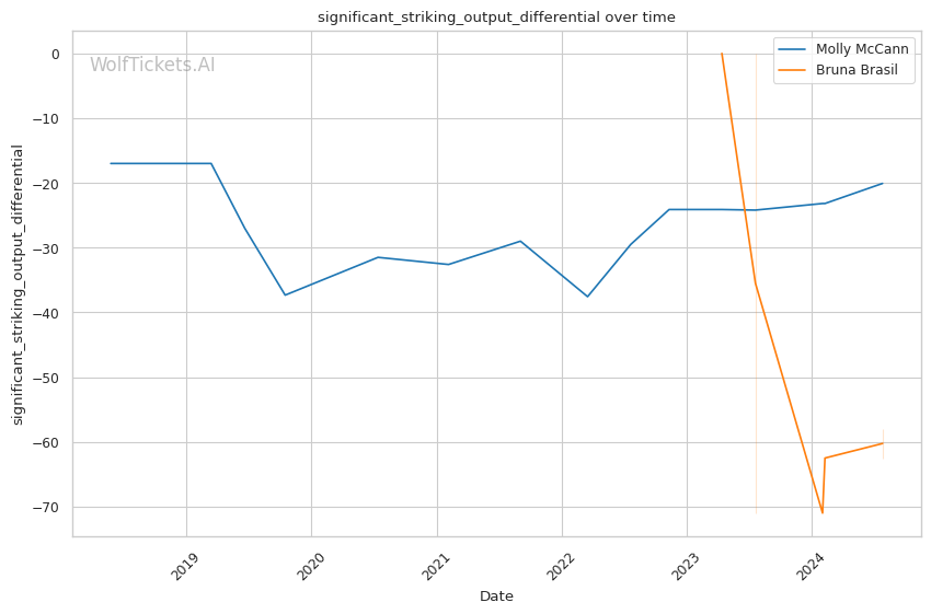 Brasil's striking defense has been a concern, absorbing more significant strikes than she lands. However, she's demonstrated decent takedown accuracy and defense, which could play a crucial role against McCann's primarily striking-based offense.