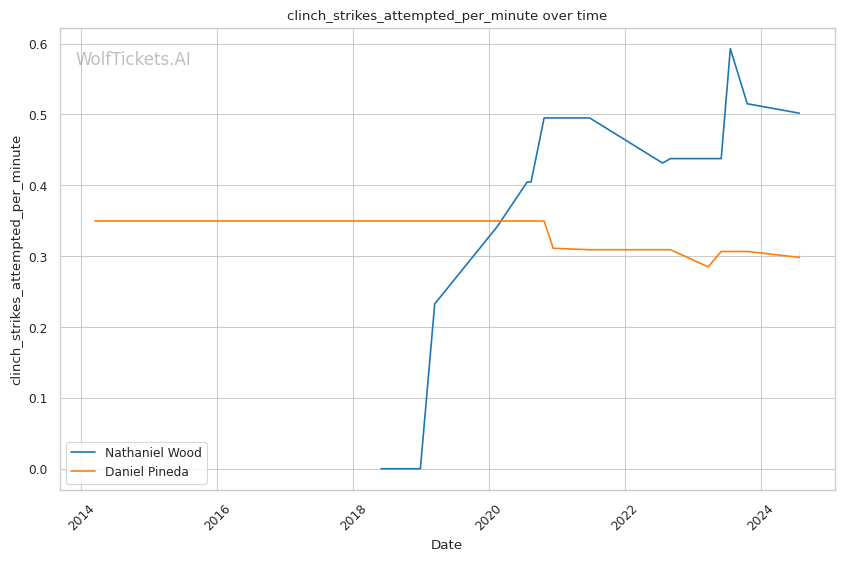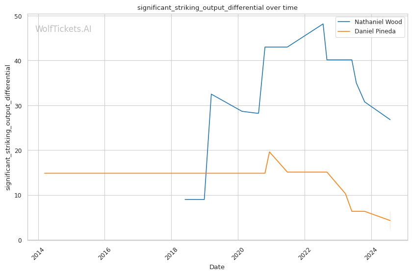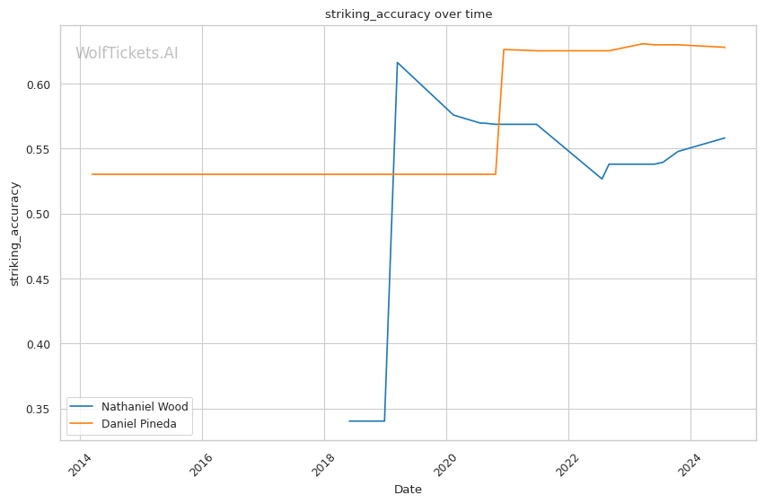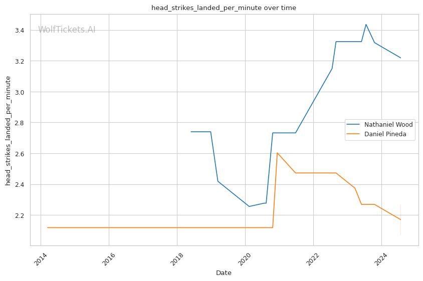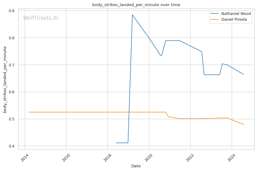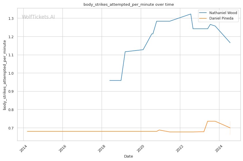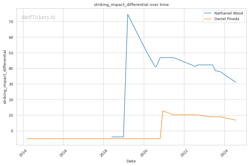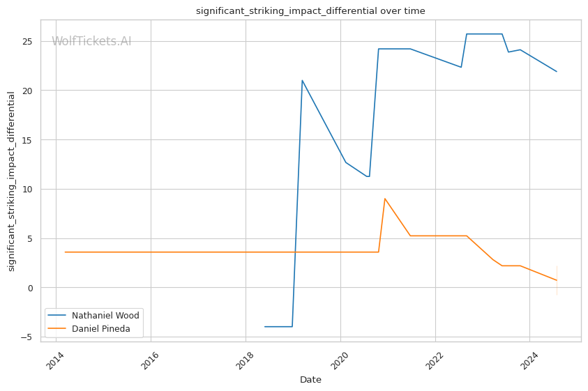 One of Pineda's strengths is his submission prowess, boasting a high number of submission attempts per fight. However, his striking defense has shown some vulnerabilities, which could be a critical factor against a technical striker like Wood.
