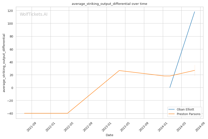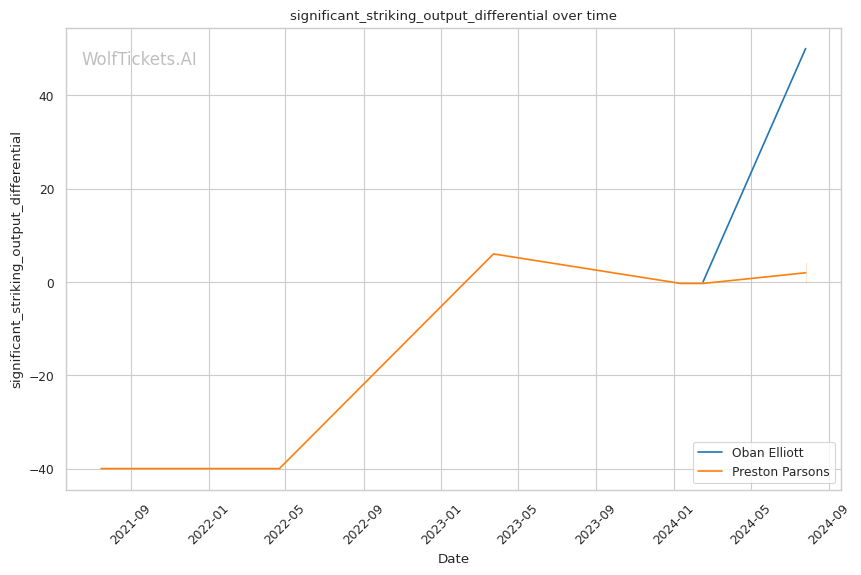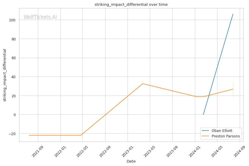 WolfTicketsAI's prediction favoring Oban Elliott is rooted in his superior striking metrics and recent performance. The key to victory for Elliott will likely be his ability to maintain his striking advantage while defending against Parsons's submission attempts. Parsons's experience and diverse skill set make him a dangerous opponent, particularly on the ground. The fight's location in Manchester could provide a slight edge to Elliott, potentially bolstering his confidence. While the model shows confidence in Elliott, the limited UFC data on him and the model's mixed results with Parsons suggest approaching this prediction with measured optimism.