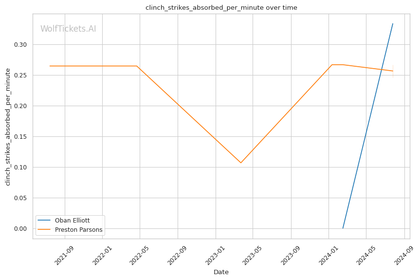 Parsons's striking, while not as voluminous as Elliott's, is still respectable at 6.62 strikes landed per minute. His significant striking accuracy sits at 55.49%. Defensively, Parsons has shown some vulnerabilities, absorbing 2.4 head strikes per minute and maintaining a 51.56% significant striking defense percentage. Notably, 9 of Parsons' 11 wins have come by submission, including armbars and rear-naked chokes, highlighting his strong ground game.