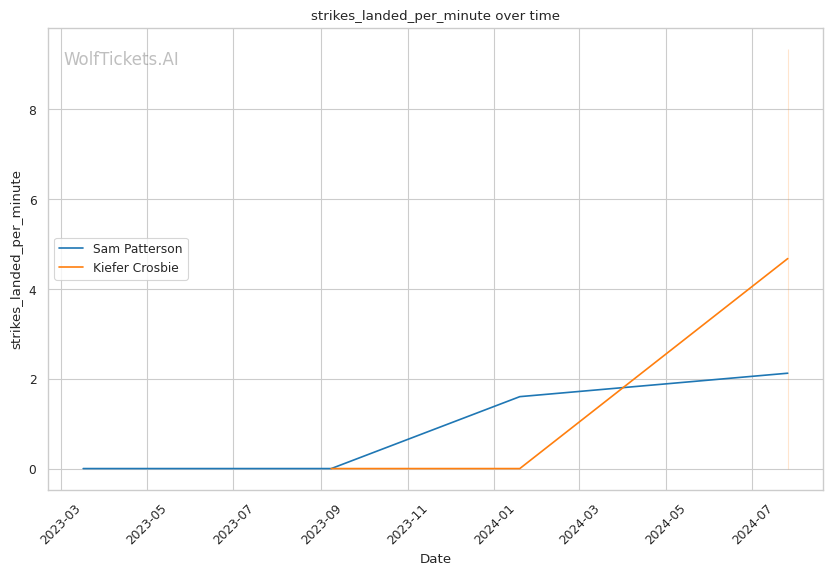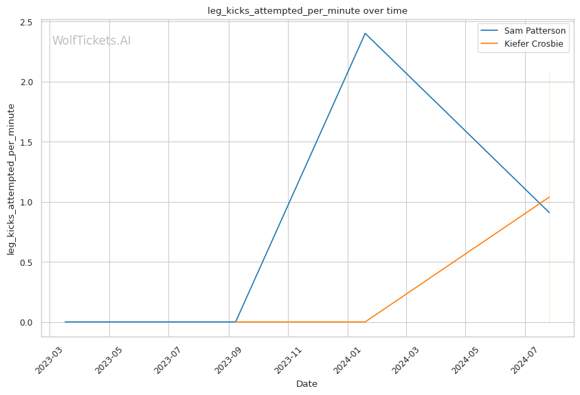 Crosbie's striking is his primary weapon. He's a dynamic striker with dangerous kicks and knockout power, landing an impressive 8.10 significant strikes per minute with 66.10% accuracy. His leg kicks, landing 2.08 per minute, could be a key factor in closing the distance against the taller Patterson.