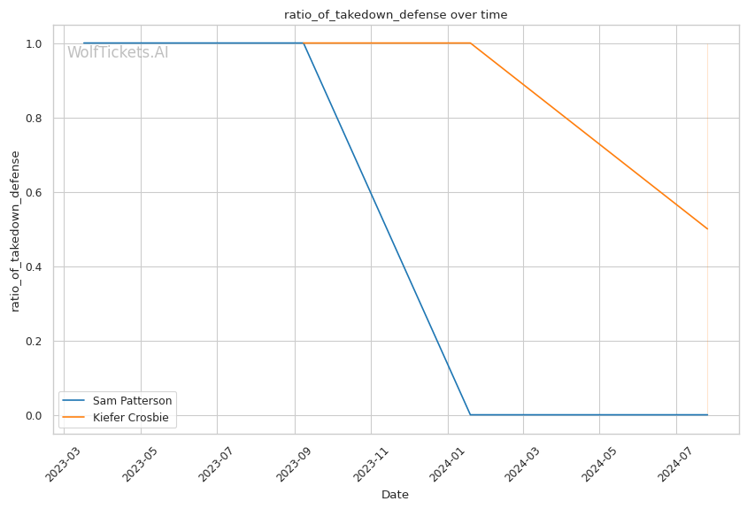 WolfTicketsAI favors Sam Patterson, aligning with the analysis of their physical attributes and recent performances. Patterson's combination of reach advantage, diverse striking, and submission skills present a formidable challenge for Crosbie. To win, Crosbie must find a way to navigate Patterson's reach, possibly using feints and leg kicks to set up power punches. However, this strategy risks exposing him to Patterson's grappling.
