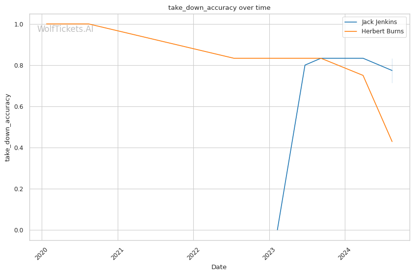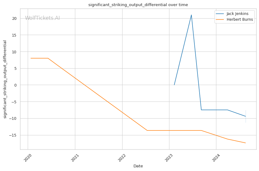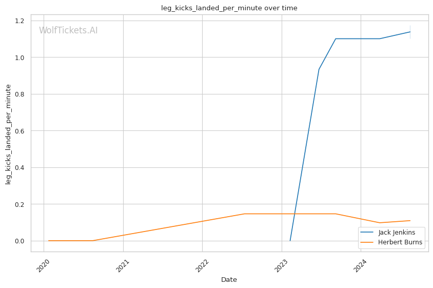 WolfTicketsAI is siding with Jack Jenkins' striking acumen and defensive grappling over Herbert Burns' submission prowess and recent form. The model believes Jenkins can use his kickboxing skills to maintain distance, pick apart Burns on the feet, and defend against takedowns.