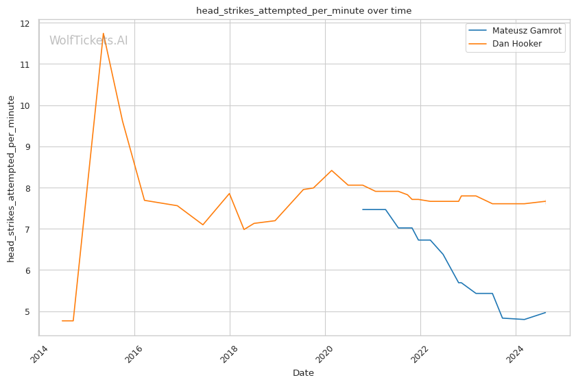 | Head Strikes Attempted per Minute | 4.966 | 7.726 | 6.091 | |