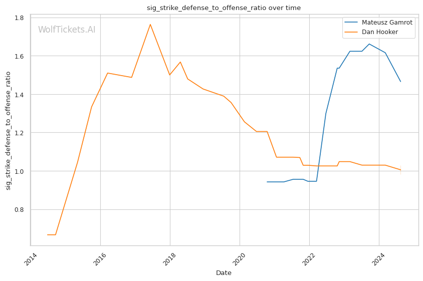 | Significant Striking Defense to Offense Ratio | 146.55% | 98.12% | 103.39% | |