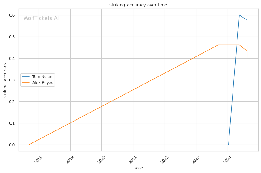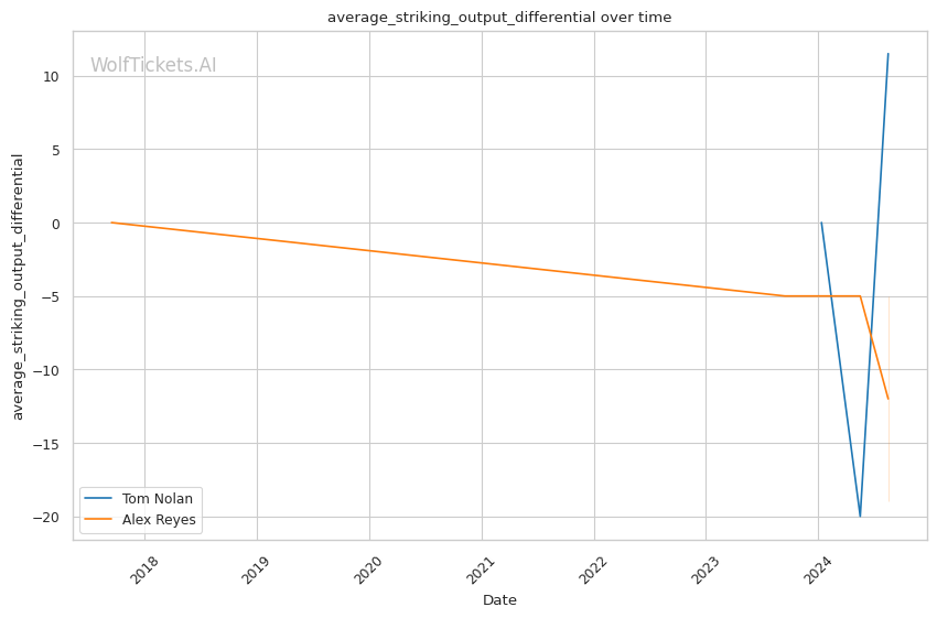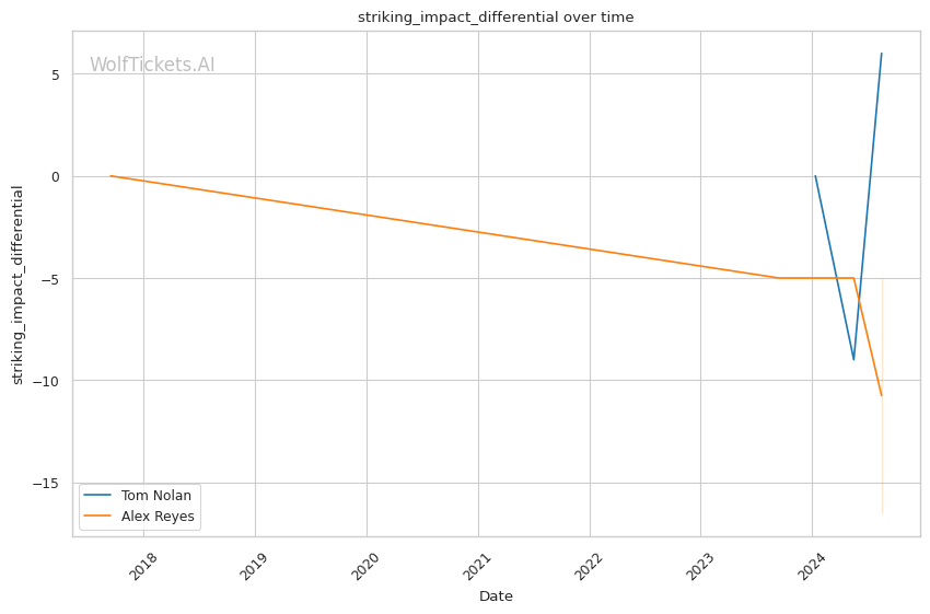 Power Striking Differentials: Both recently (+2 score impact) and overall (+4), Nolan's superior ability to land devastating blows heavily supports the AI pick. Reyes' -6.75 and -17 respective differentials pale in comparison.