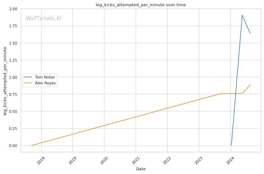 | Leg kicks Attempted per Minute | 1.638 | 1.010 | 0.684 | |