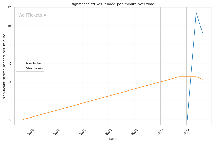 | Stat | Tom Nolan | Alex Reyes | Weight Class Average | |