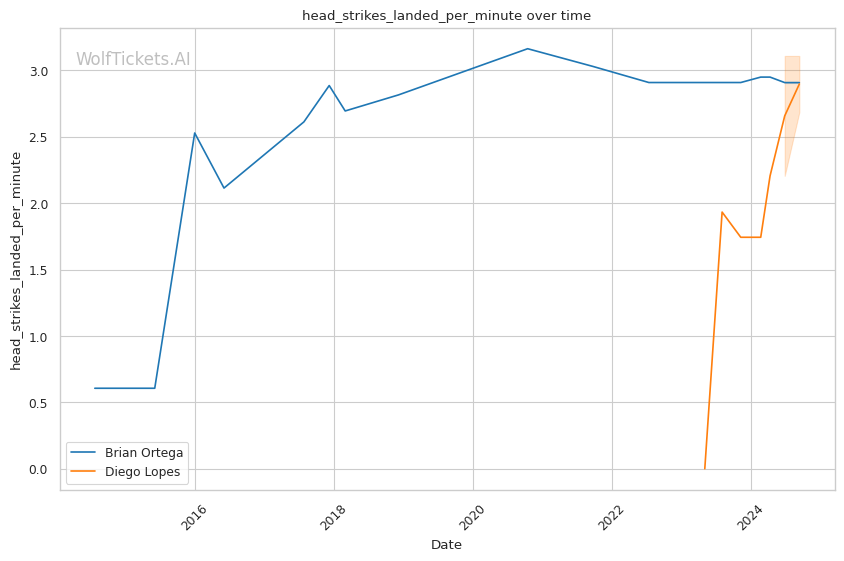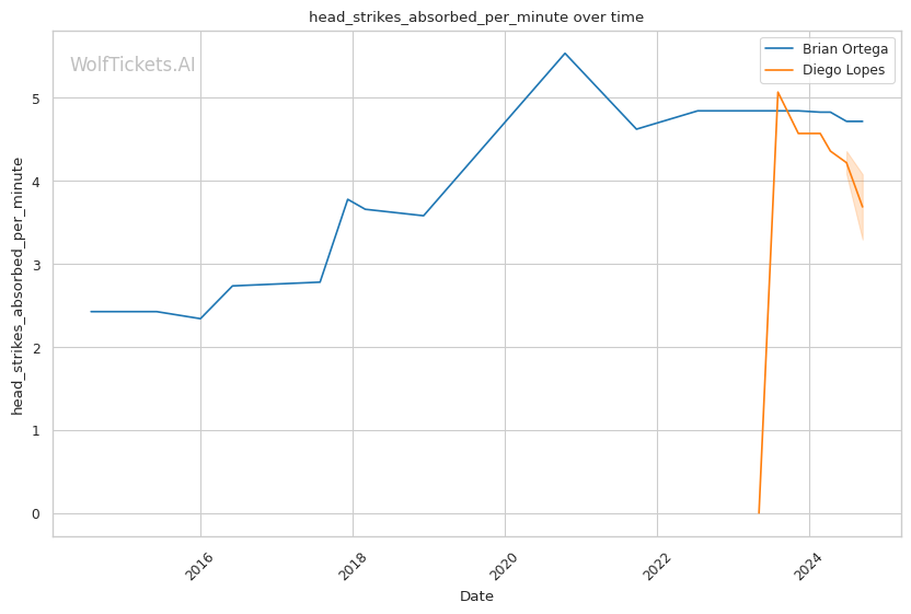 Striking Defense: Lopes absorbs only 2.68 strikes per minute compared to Ortega absorbing 4.34. This striking defense gap, combined with Lopes' striking accuracy edge, offers him clearer paths to victory on the feet.