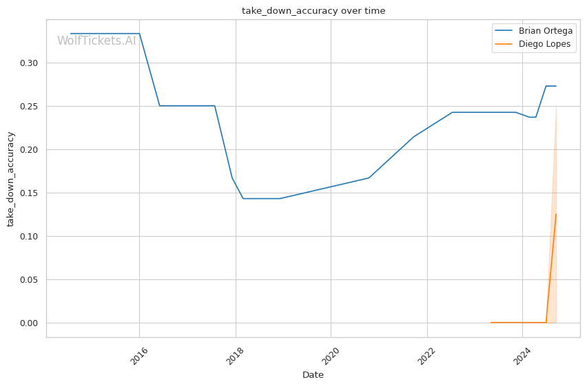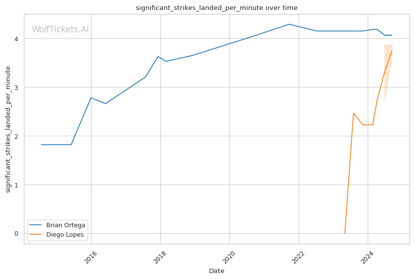 | Stat | Brian Ortega | Diego Lopes | Weight Class Average | |