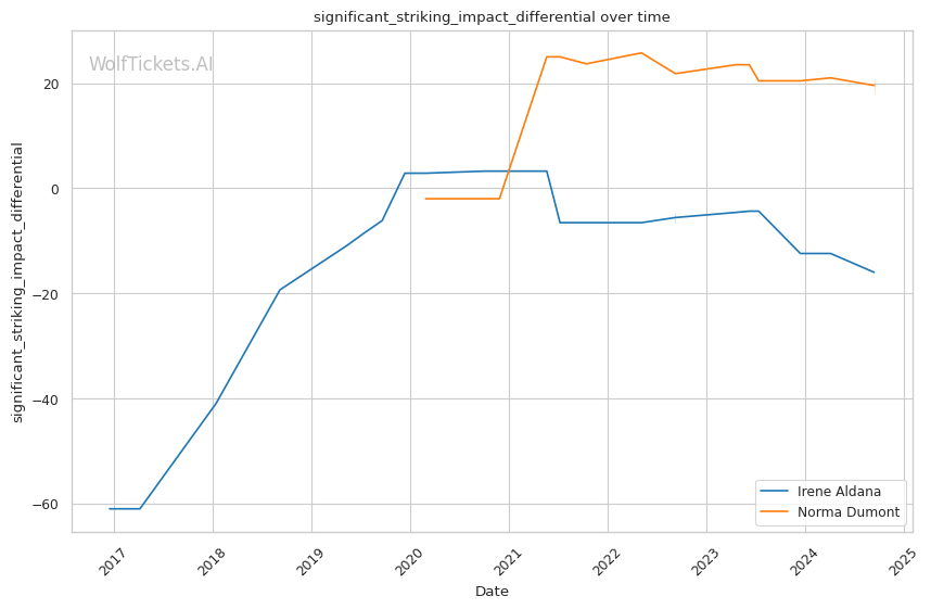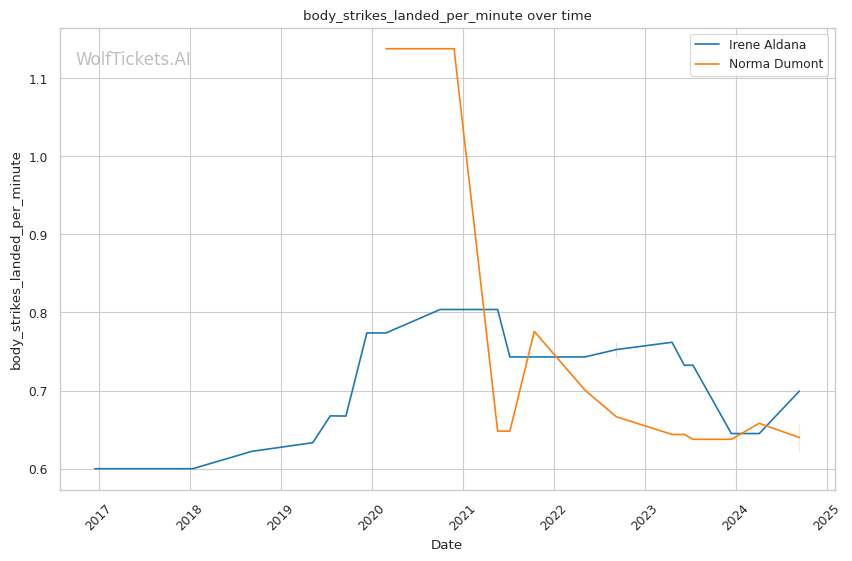 | Stat | Irene Aldana | Norma Dumont | Weight Class Average | |