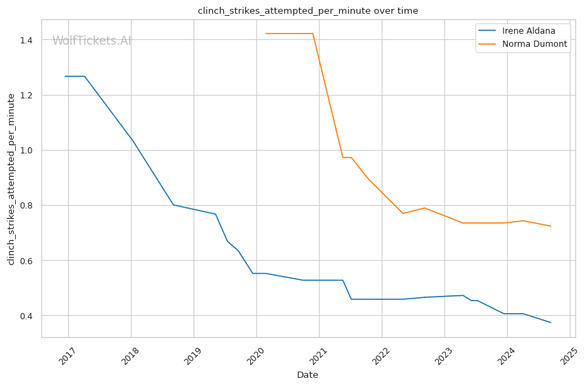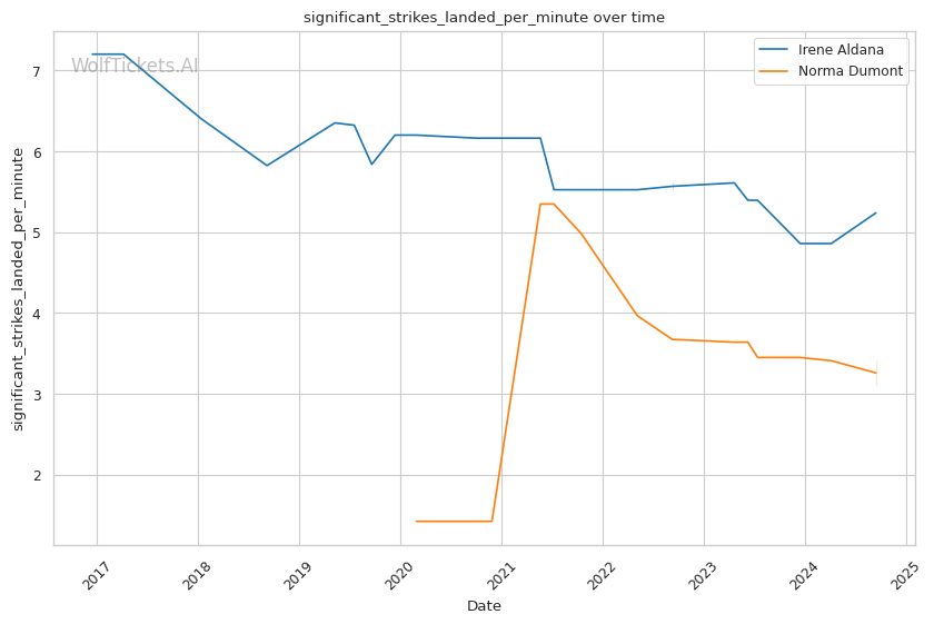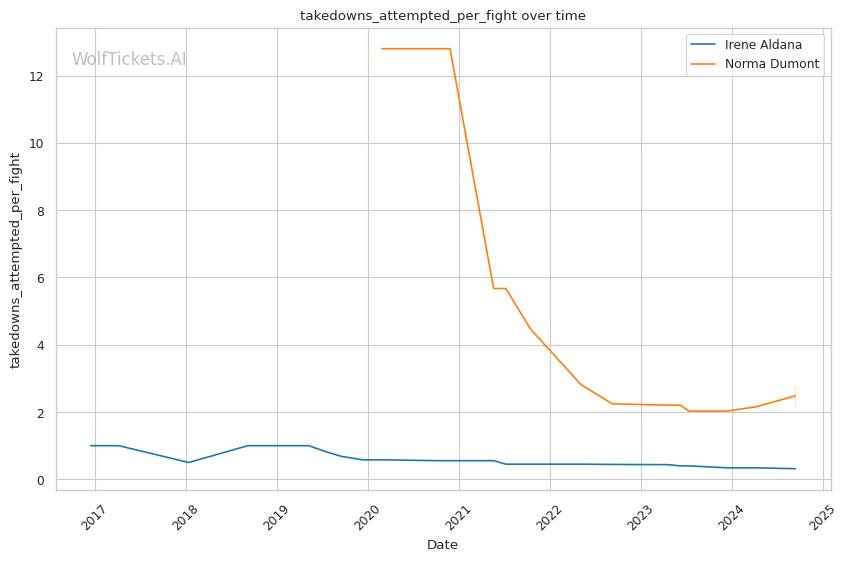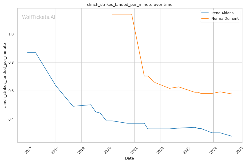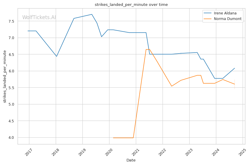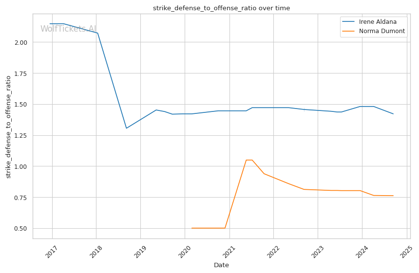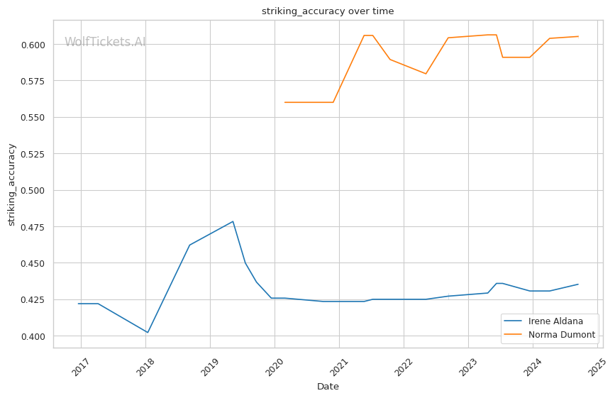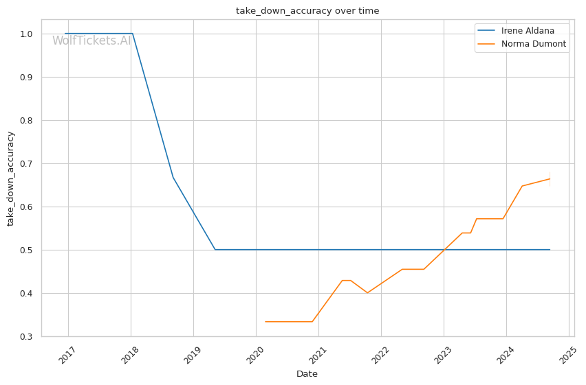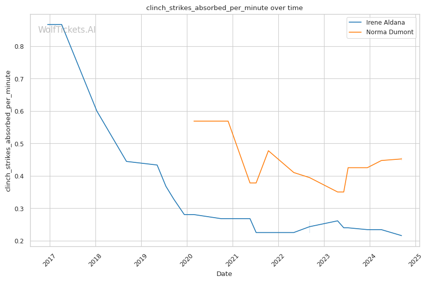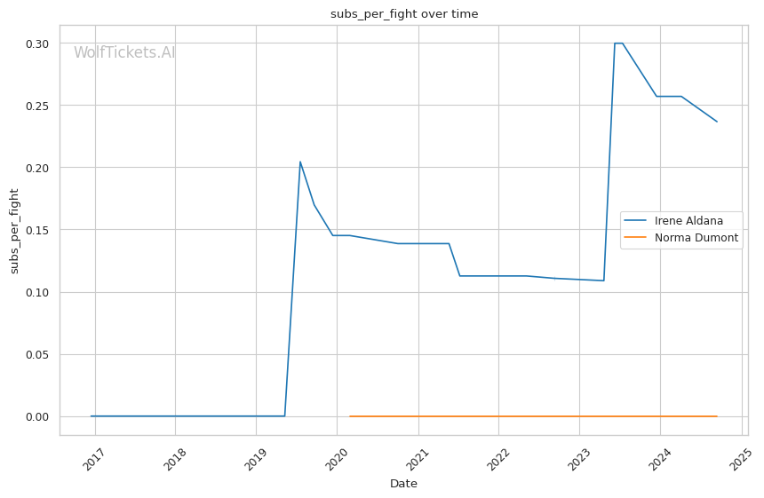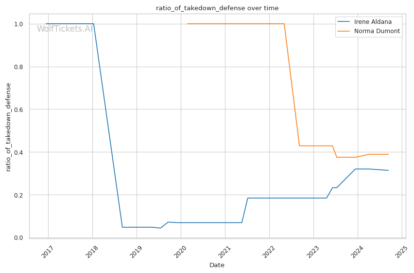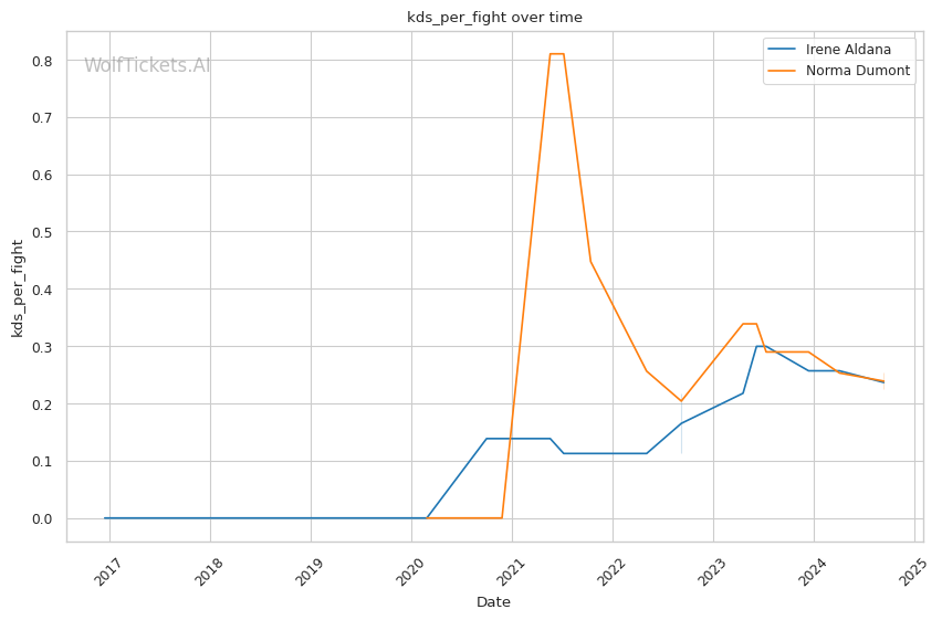 Striking Defense Percentage: Although Aldana has the edge in raw striking metrics, Dumont has the superior striking defense at 66% vs 57%. Dumont's defensive grappling makes her harder to hit cleanly.