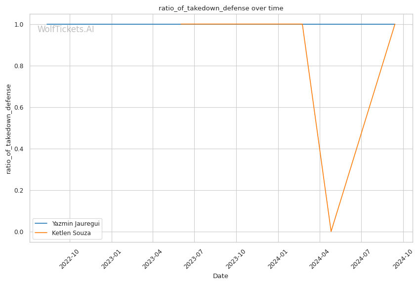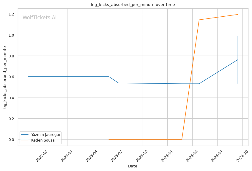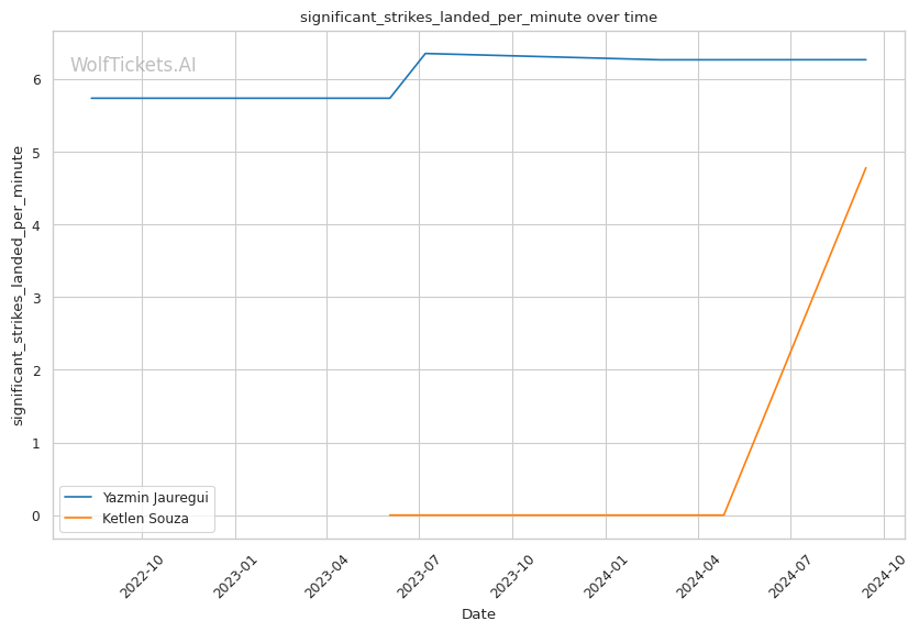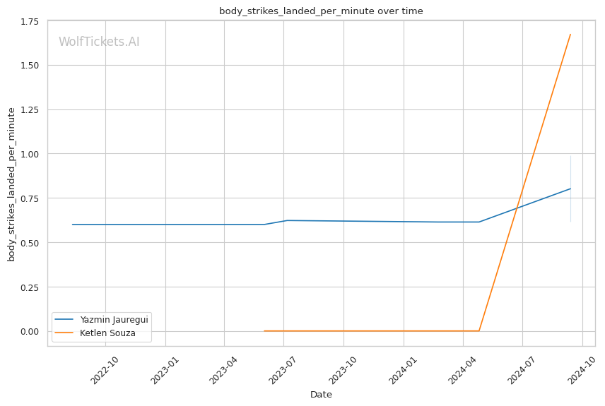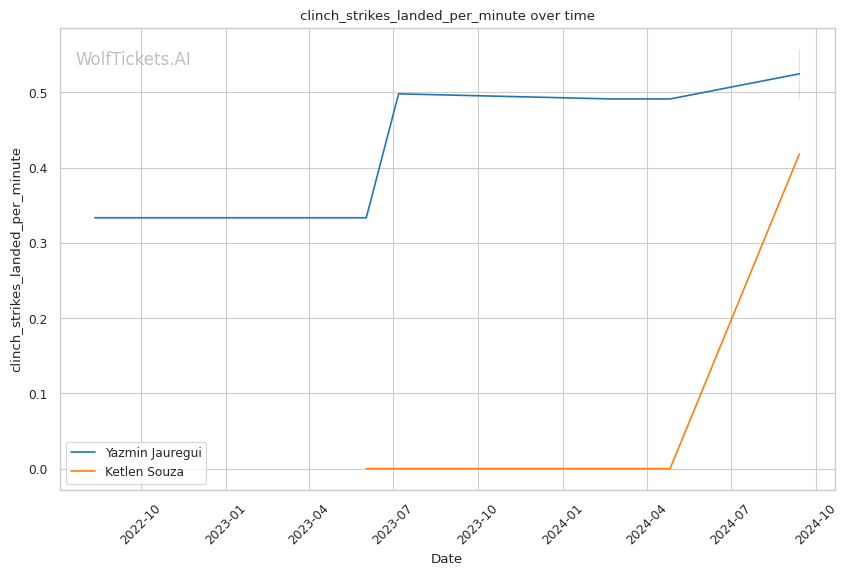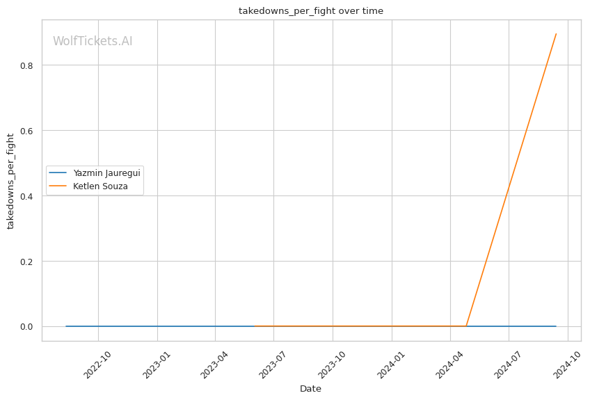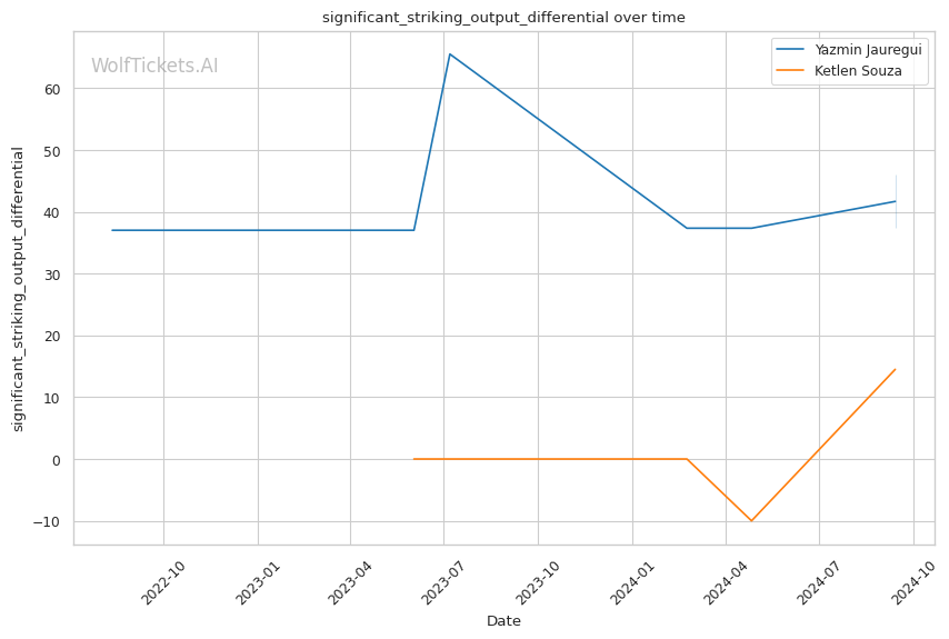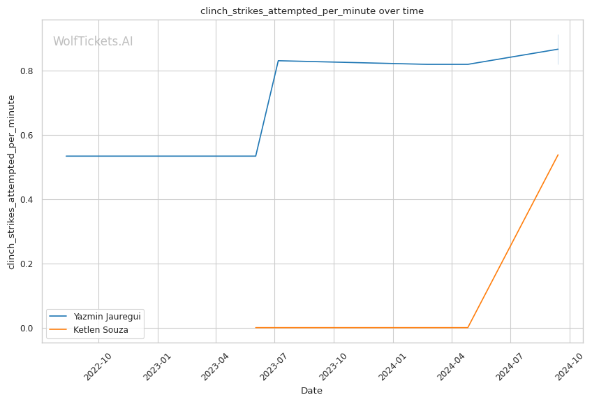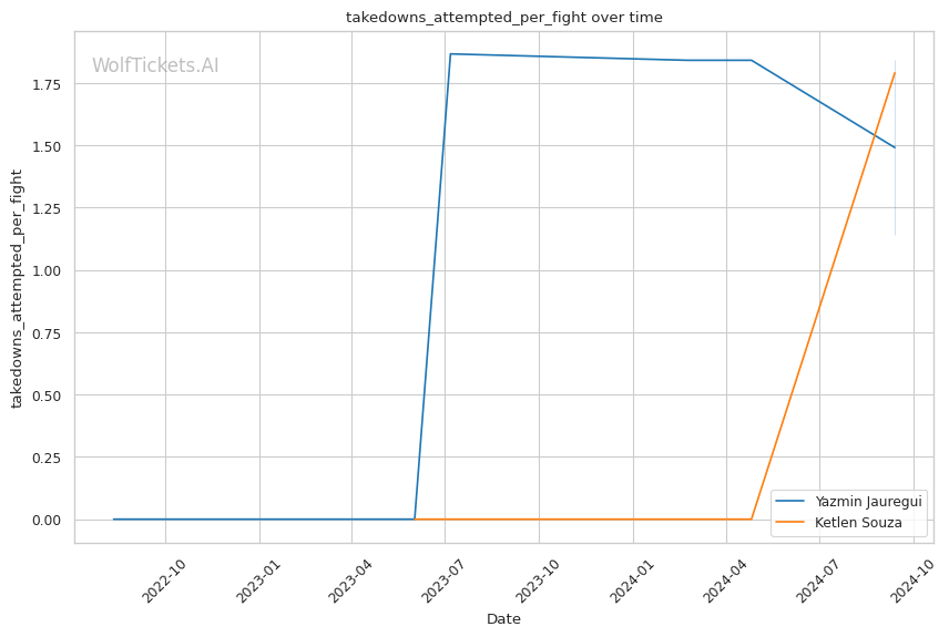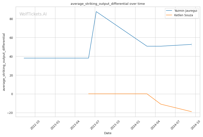 Grappling: Souza's +1 boost from recent takedowns attempted per fight hints she may look to bring grappling into play, an area of potential vulnerability for Jauregui.