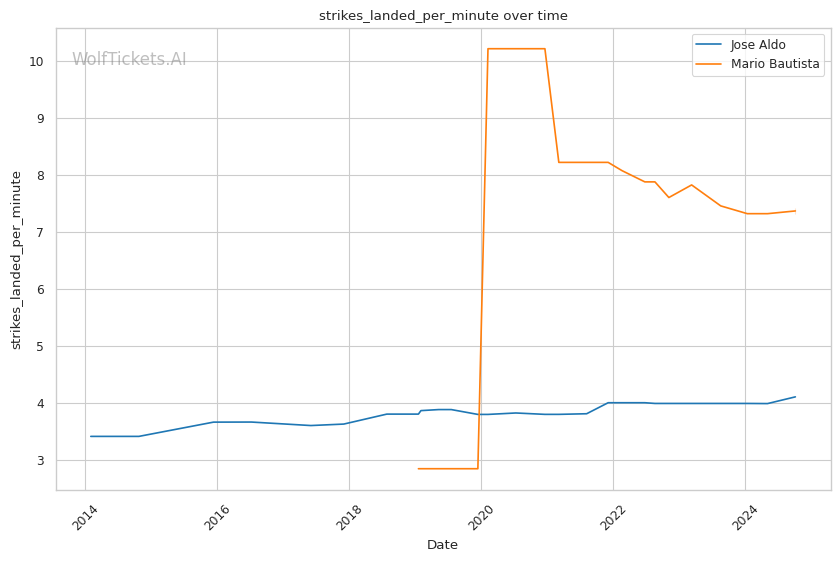 | Stat | Jose Aldo | Mario Bautista | Weight Class Average | |