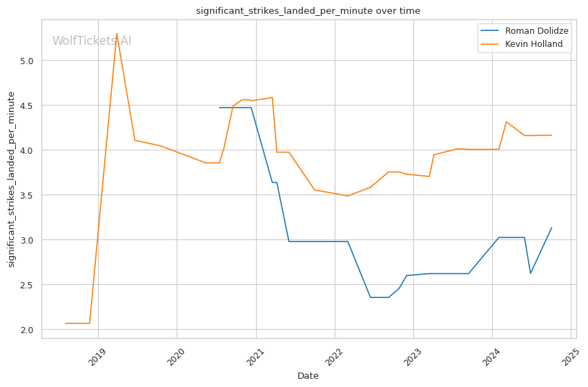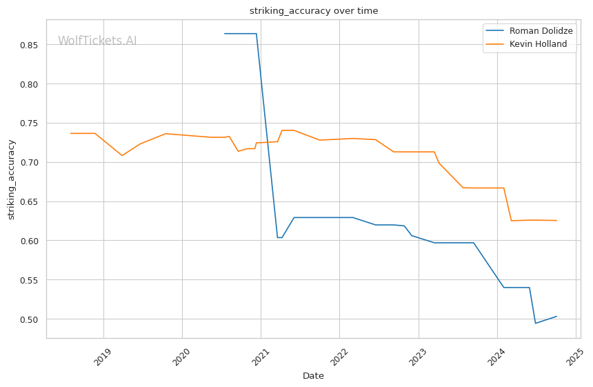Ultimately, the model sees Holland's striking advantages, recent form, and physical dimensions as more predictive than Dolidze's grappling threat. But it still projects a competitive fight.
