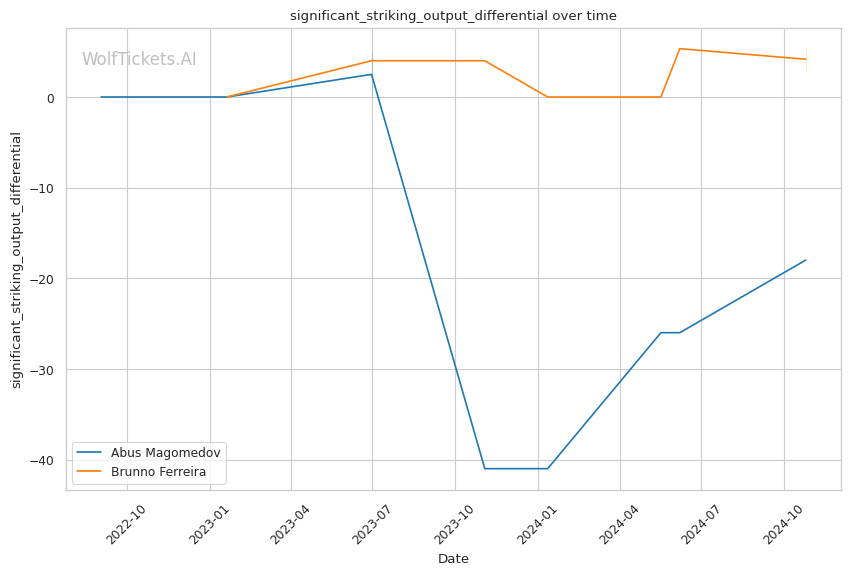 TrueSkill: Magomedov's TrueSkill rating (29.49) is lower than Ferreira's (33.77), but within a reasonable range. The model likely considers this in conjunction with other factors.