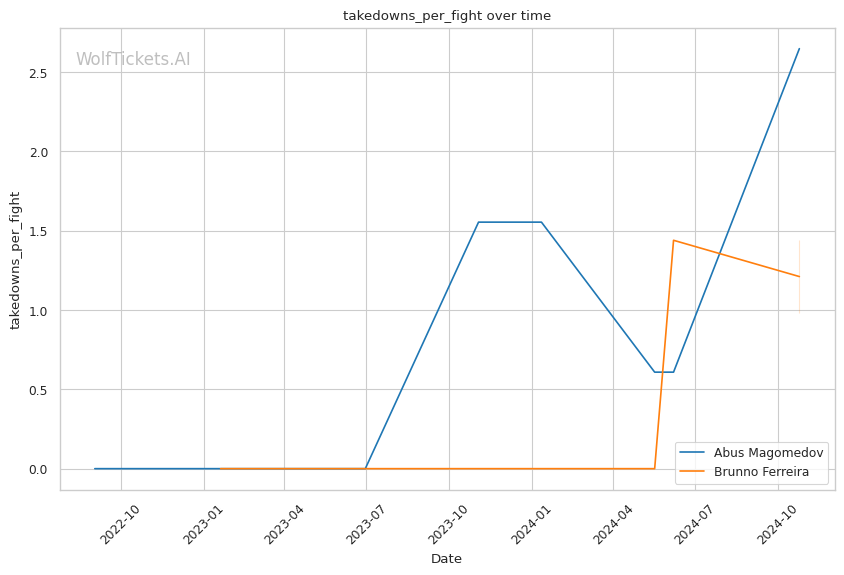 Reach: Magomedov's 78-inch reach provides a 6-inch advantage over Ferreira's 72 inches. This could be significant in striking exchanges and maintaining distance control.