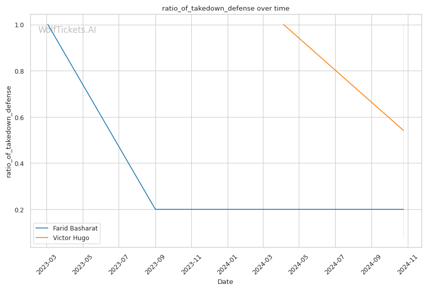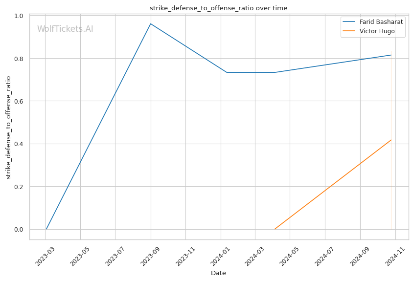 However, Hugo's takedown defense and grappling have been areas of vulnerability in the past. With a takedown defense ratio of just 0.0833, he may struggle against opponents who persistently pursue takedowns and control on the ground.