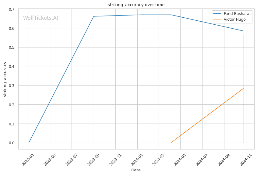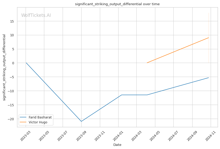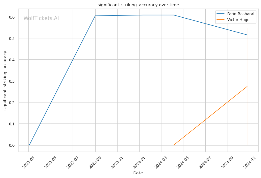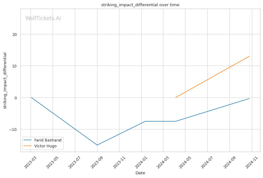 Significant Striking Impact Differential: Despite Hugo's striking prowess, Basharat actually has a higher significant striking impact differential (7.3945 vs 26.0000). This suggests that Basharat's strikes, while fewer in number, may be more impactful and damaging.
