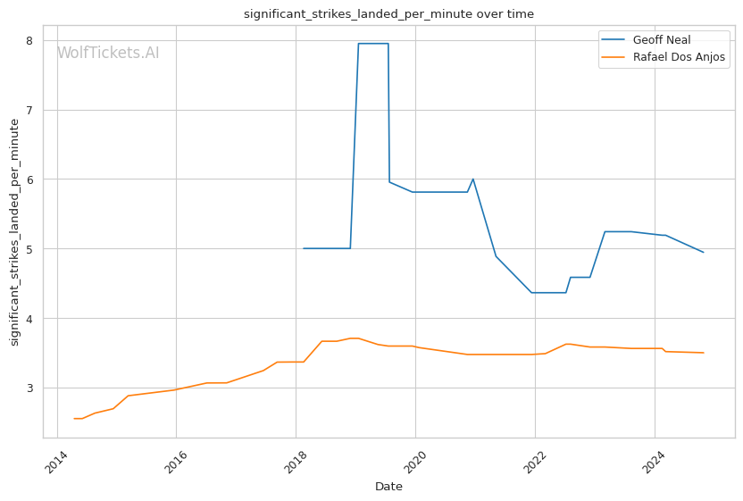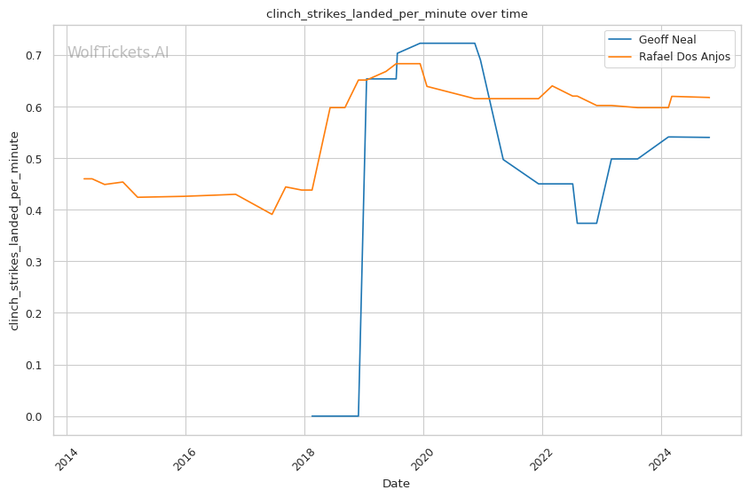 | Stat | Geoff Neal | Rafael Dos Anjos | Weight Class Average | |