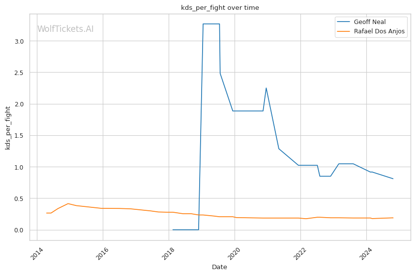 Recent Win Percentage: Neal has won 33% of his last fights vs RDA's 33%, increasing the score by 3 points. Shows recent form matters.