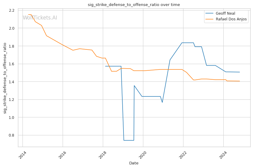 | Significant Striking Defense to Offense Ratio | 150.55% | 140.32% | 100.42% | |