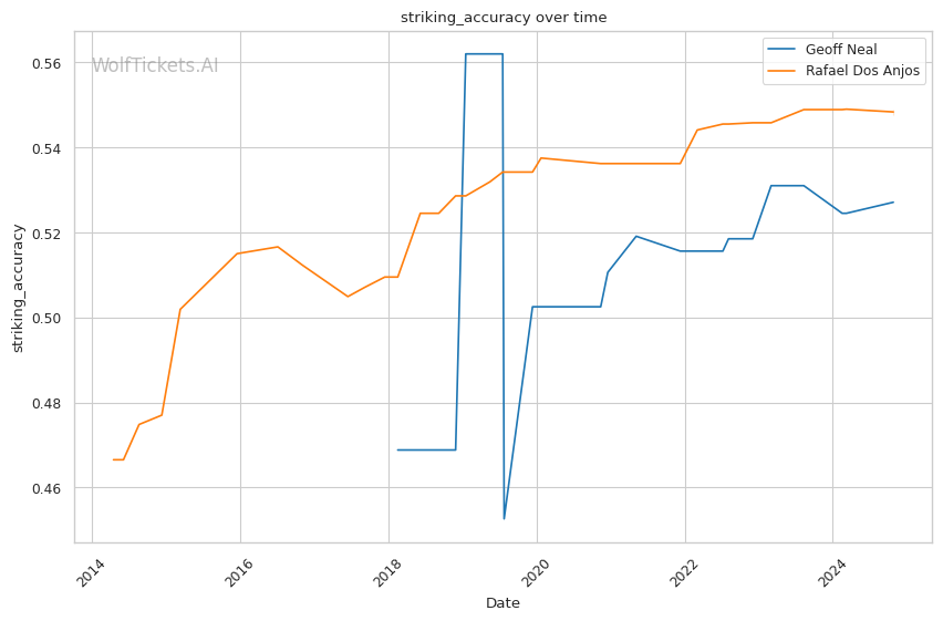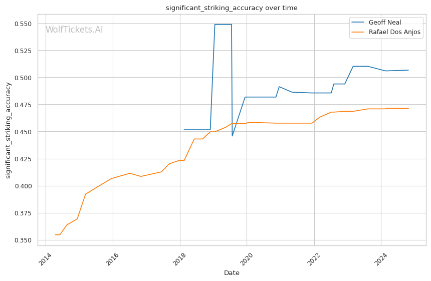 | Significant Striking Accuracy | 50.67% | 47.12% | 44.99% | |