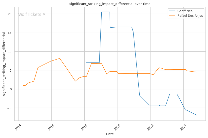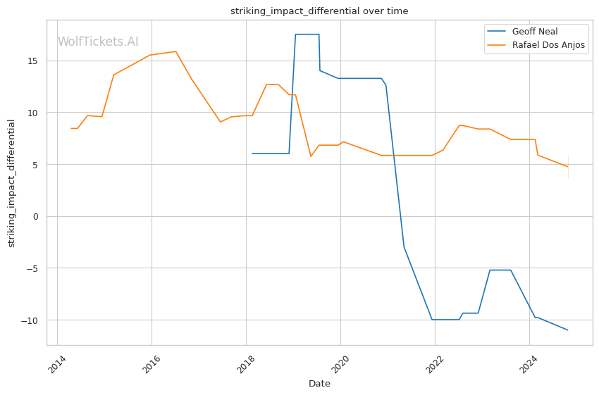 Striking/Impact Stats: Neal is leading numerous striking metrics like impact differential, offering a projected striking advantage. The stats align with the odds.