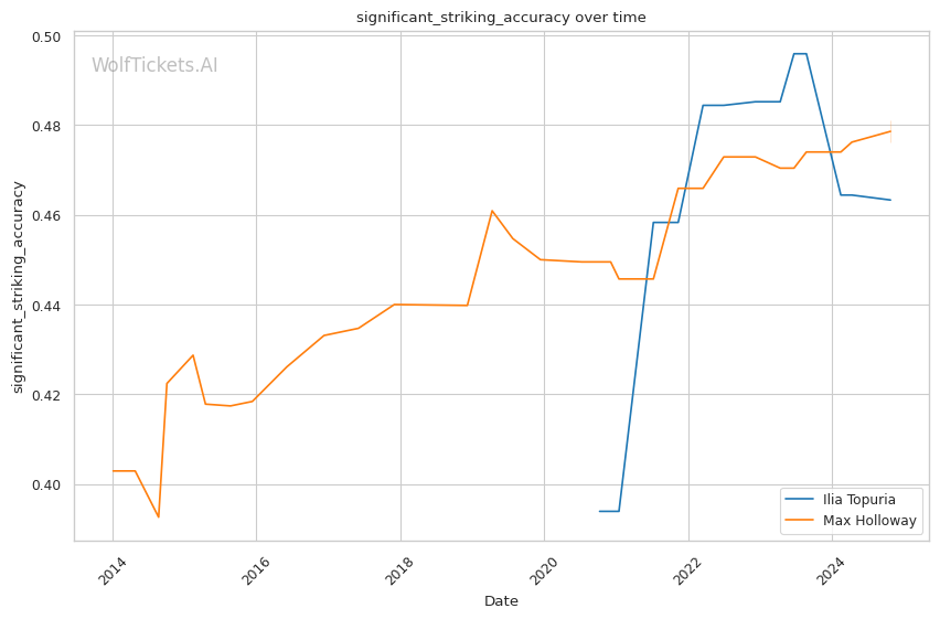 | Significant Striking Accuracy | 46.33% | 48.10% | 50.08% | |