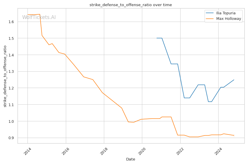 | Striking Defense to Offense Ratio | 124.86% | 90.34% | 91.59% | |