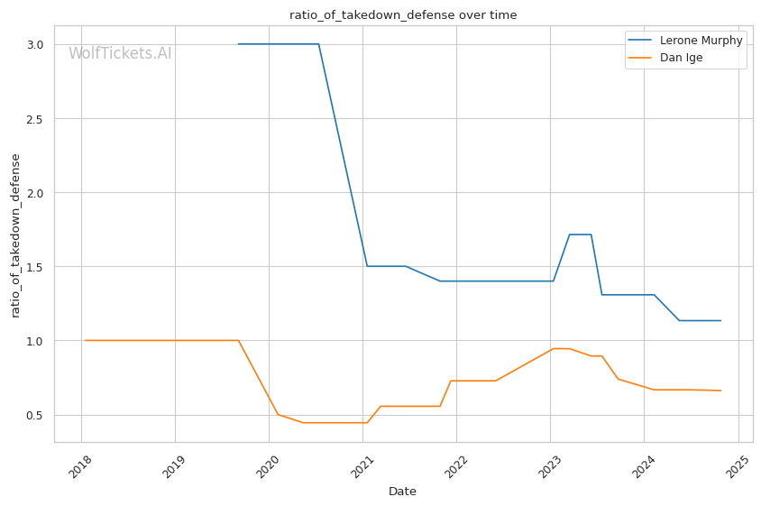 Takedown Defense Ratio: Murphy's 1.3106 recent takedown defense ratio eclipses Ige's 0.6326, suggesting he's more adept at stuffing takedowns and maintaining the fight on the feet.