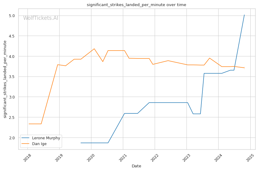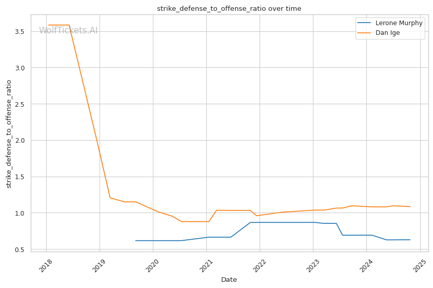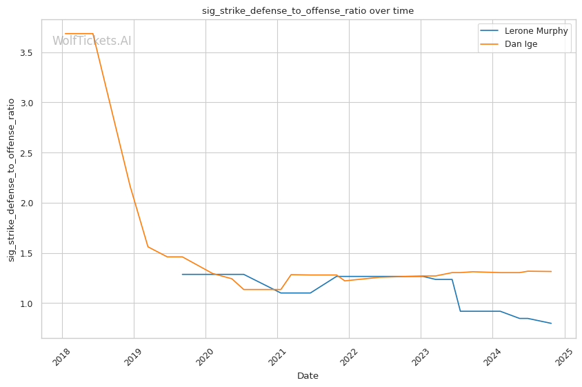 Significant Strike Defense to Offense Ratio: Murphy's recent ratio of 0.9394 compared to Ige's 1.2042 suggests he's better at avoiding significant strikes relative to his own output.