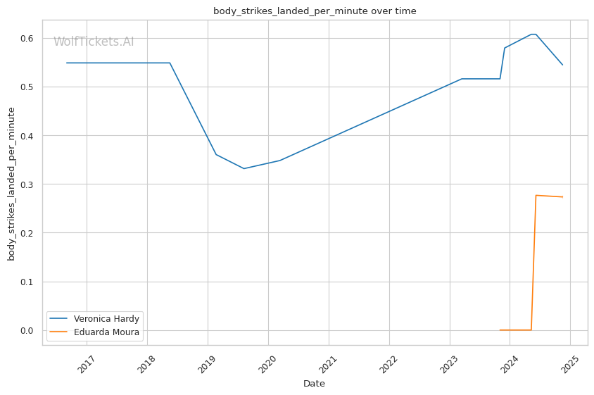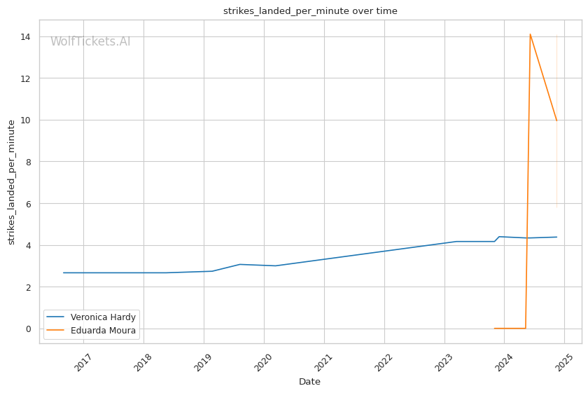 | Stat | Veronica Hardy | Eduarda Moura | Weight Class Average | |