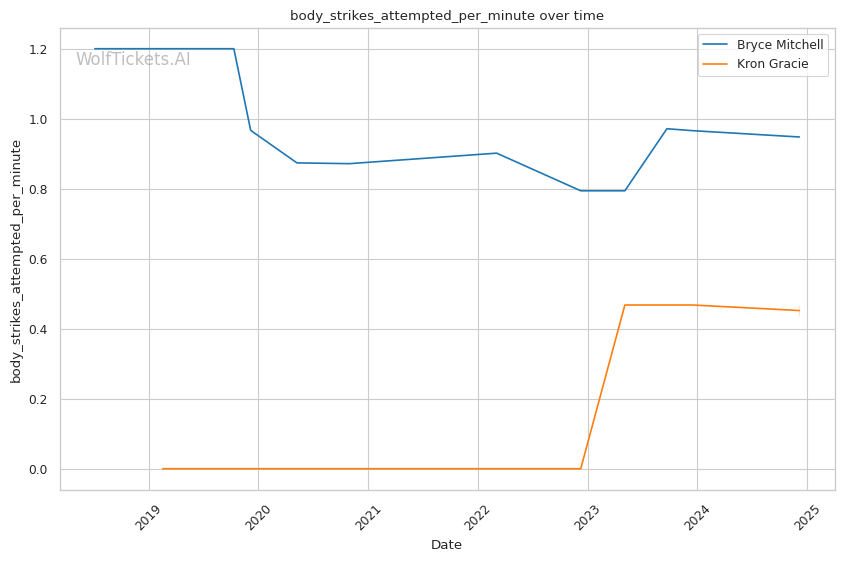 | Stat | Bryce Mitchell | Kron Gracie | Weight Class Average | |