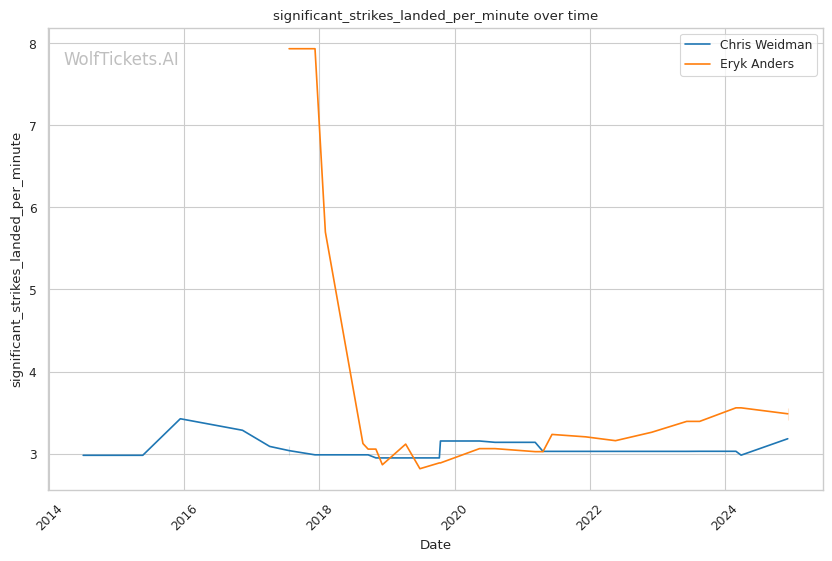| Stat | Chris Weidman | Eryk Anders | Weight Class Average | |