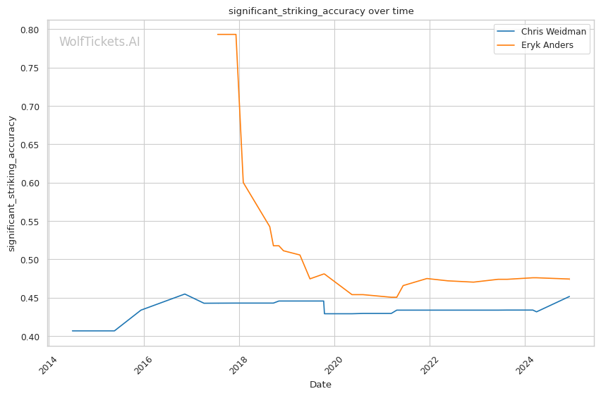 | Significant Striking Accuracy | 45.15% | 47.26% | 41.85% | |