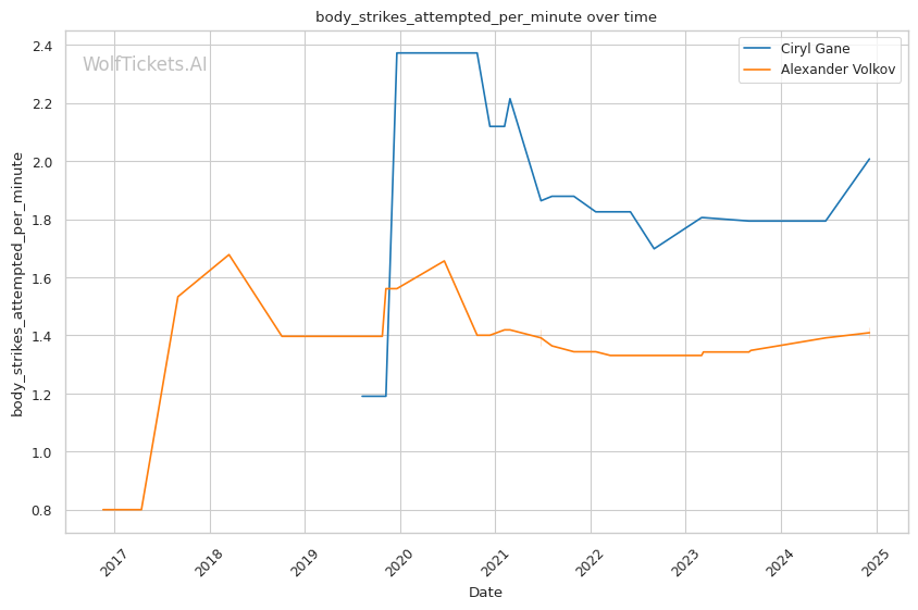 | Body Strikes Attempted per Minute | 2.008 | 1.427 | 0.953 | |