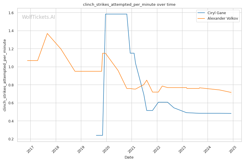 | Clinch Strikes Attempted per Minute | 0.481 | 0.686 | 0.582 | |