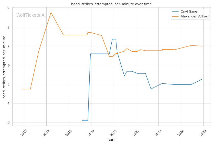 | Head Strikes Attempted per Minute | 5.247 | 6.951 | 6.214 | |