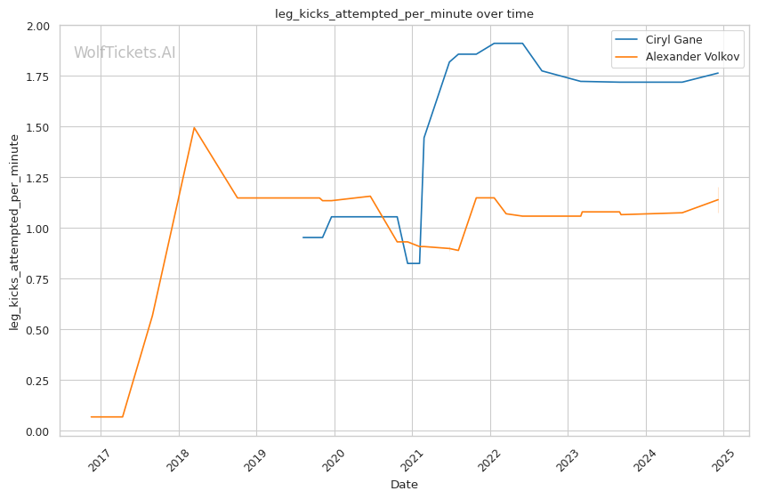 | Leg kicks Attempted per Minute | 1.764 | 1.203 | 0.588 | |