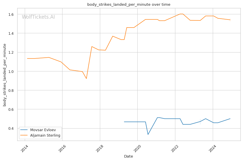 | Body Strikes Landed per Minute | 0.500 | 1.525 | 0.785 | |