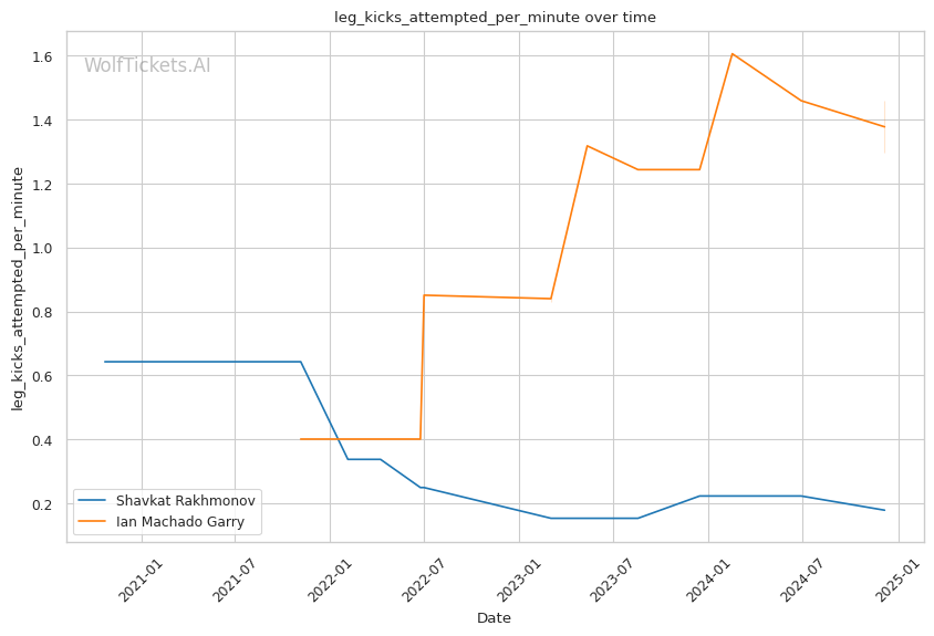 | Leg kicks Attempted per Minute | 0.179 | 1.295 | 0.767 | |