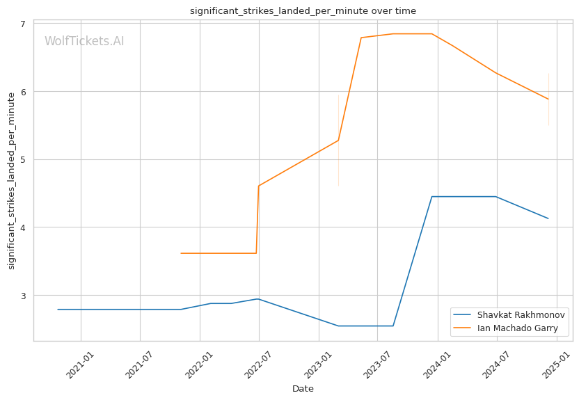 | Stat | Shavkat Rakhmonov | Ian Machado Garry | Weight Class Average | |