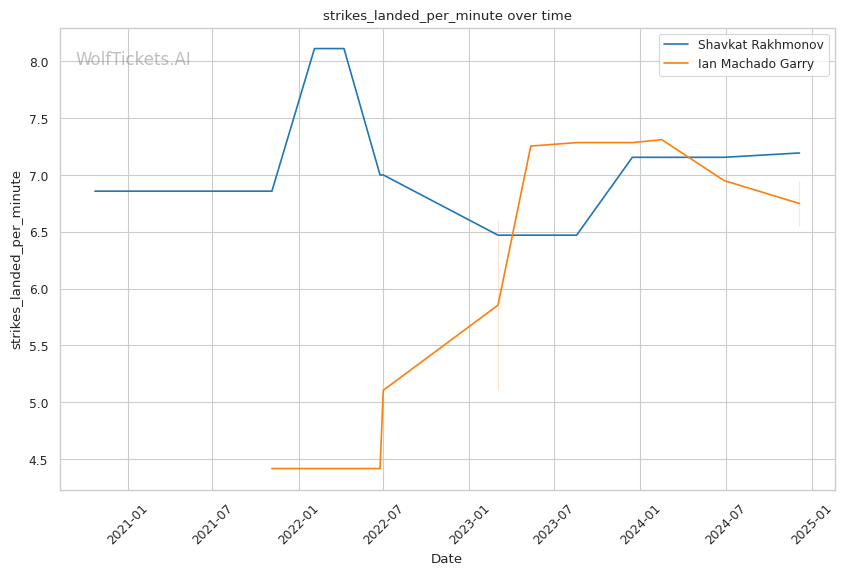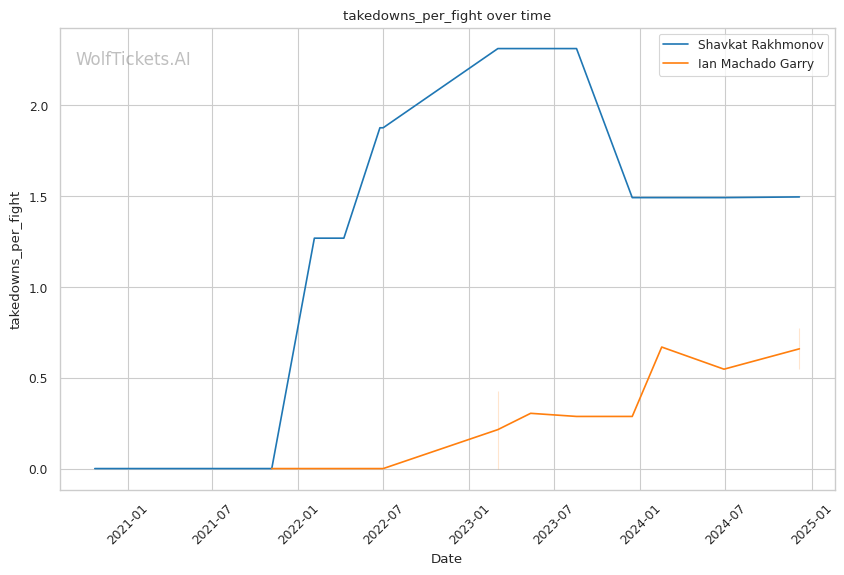 Recent Metrics: Rakhmonov's recent performances have been utterly dominant. He's landing a whopping 5.20 takedowns attempted per fight in his last few, an unrelenting wrestling pace. He's also absorbing very little in return, with a superb 59% significant strike defense rate lately. Garry's defensive metrics don't quite stack up.