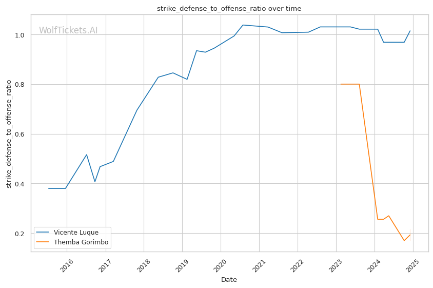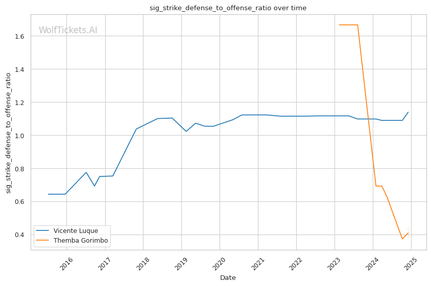 | Significant Striking Defense to Offense Ratio | 113.87% | 44.44% | 99.57% | |