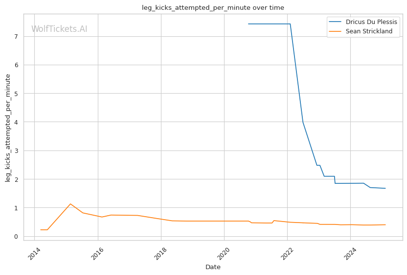 | Leg kicks Attempted per Minute | 1.671 | 0.407 | 1.208 | |