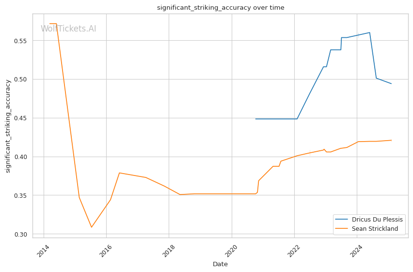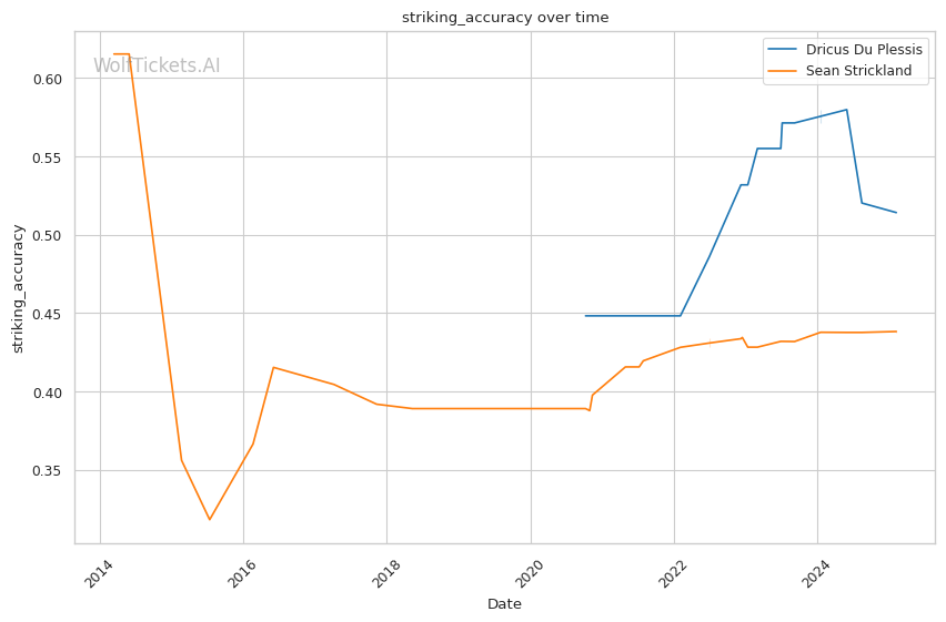 WolfTicketsAI's past predictions show successful picks for several of Du Plessis’ matches, most notably against high-caliber opponents. While the system previously favored Strickland incorrectly against Du Plessis, it showcased reliability for Du Plessis' dynamic adaptability, bolstering confidence in backing him again.